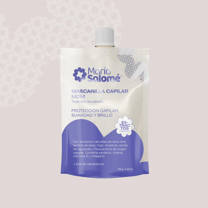 Nuestra Mascarilla Capilar Mom es el producto perfecto para acondicionar y transformar tu cabello durante la maternidad. Contiene una poderosa mezcla de extractos naturales de aloe vera, lecitina de soya, trigo, levadura, aceite de aguacate y fitoqueratina de origen vegetal que ofrecen una experiencia única de suavidad, brillo y textura. Su fórmula especial y libre de parabenos asegura que recibas lo mejor para tu cabello, mientras lo protege y mejora su apariencia. Es perfecta para las mujeres en periodo de gestación y lactancia que buscan un tratamiento capilar suave y natural.